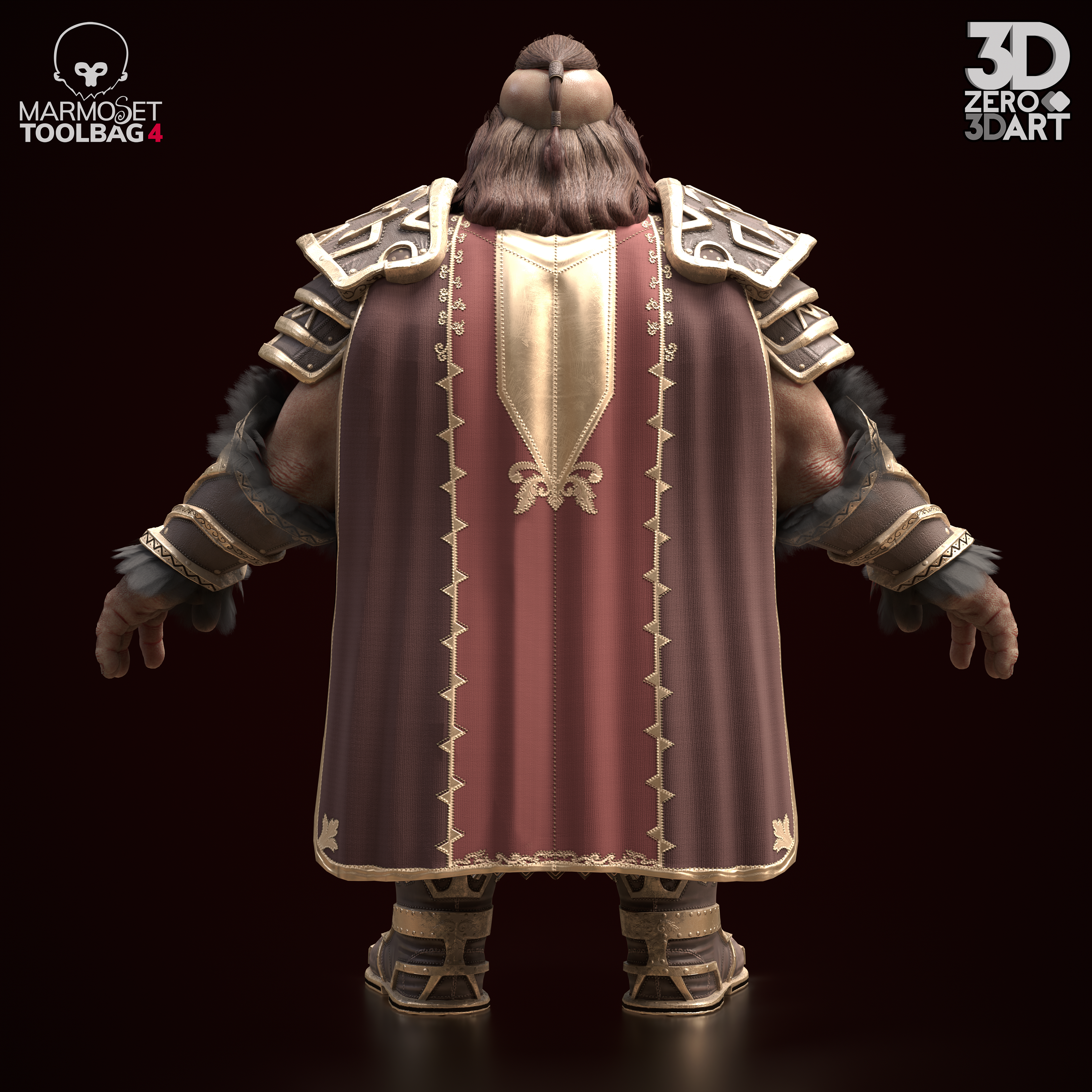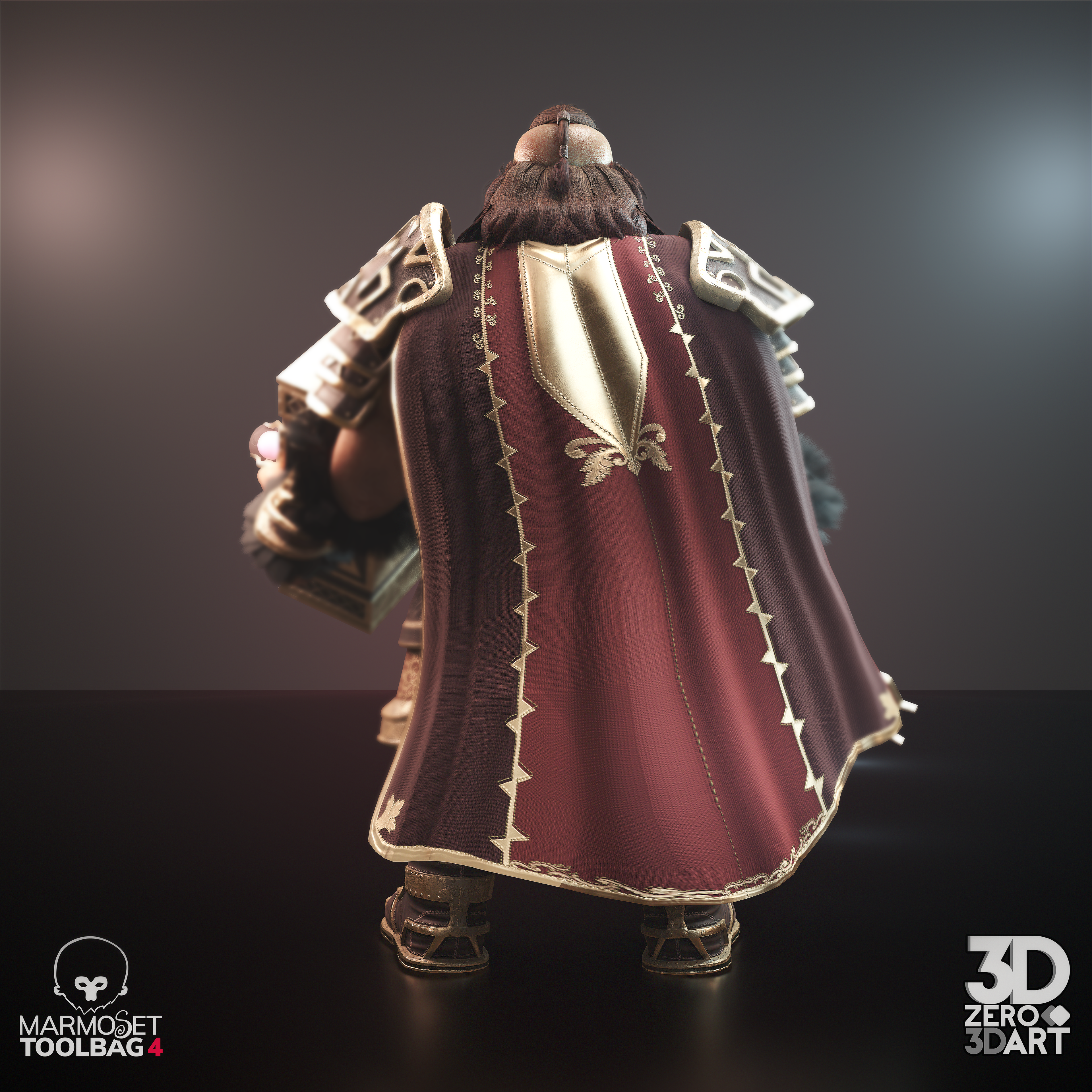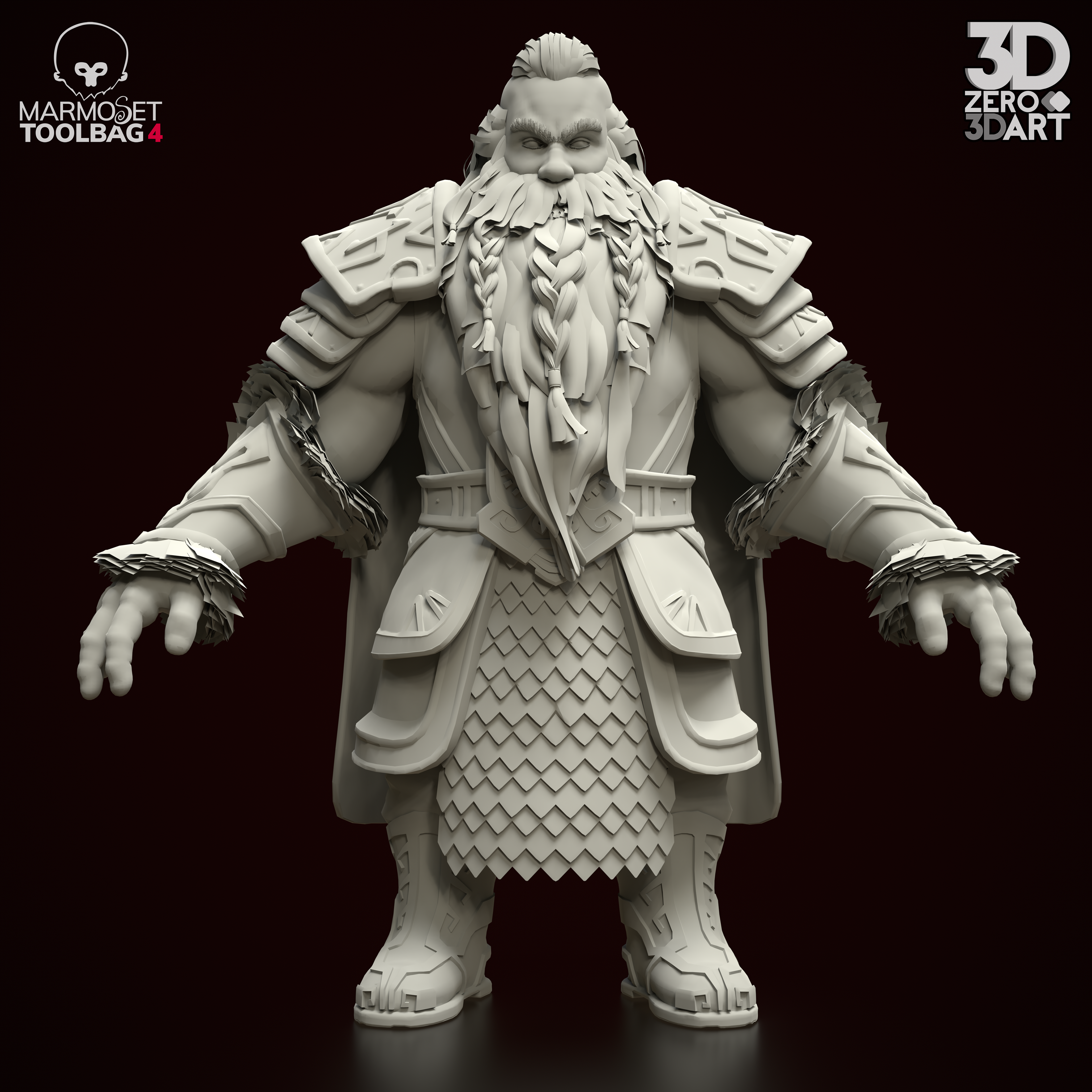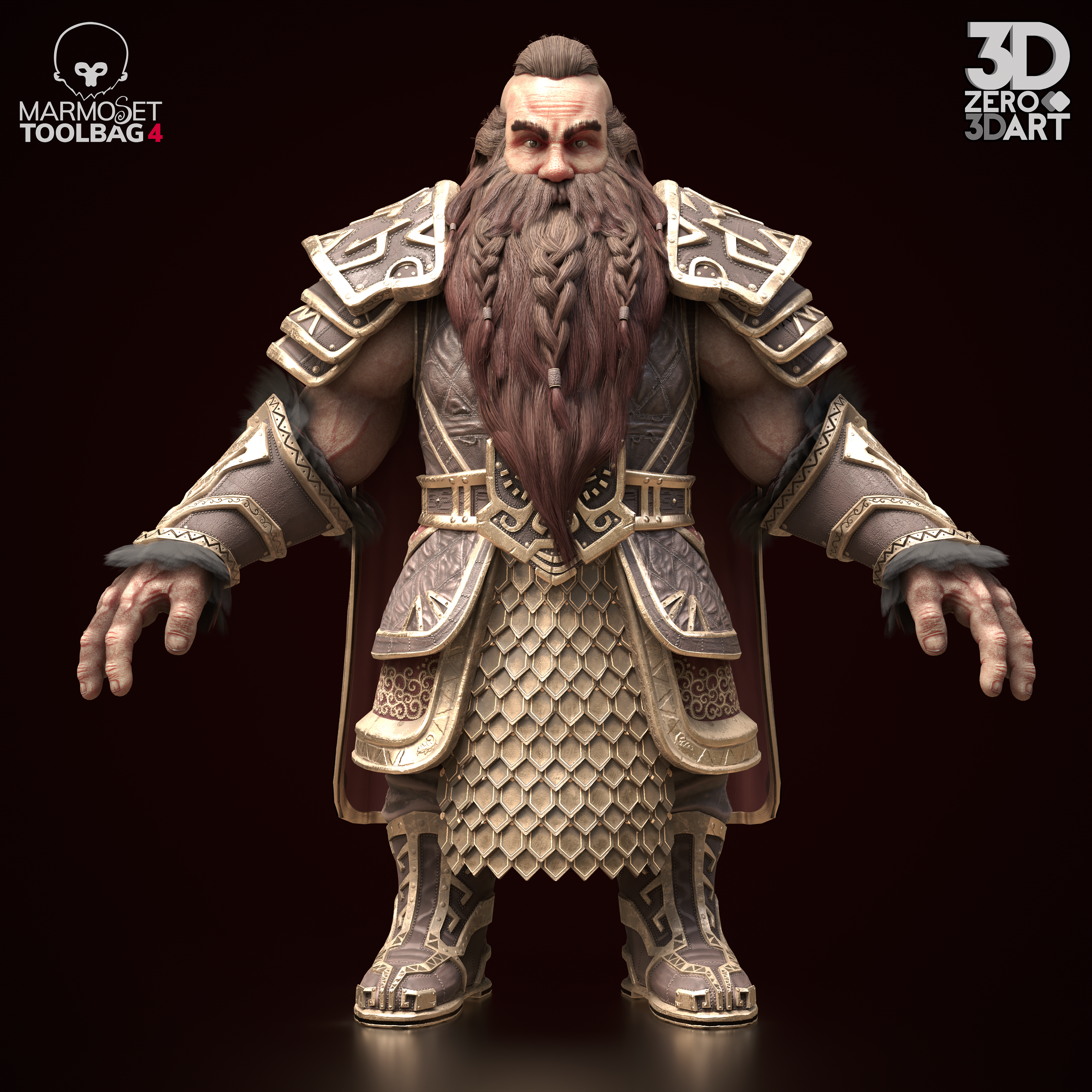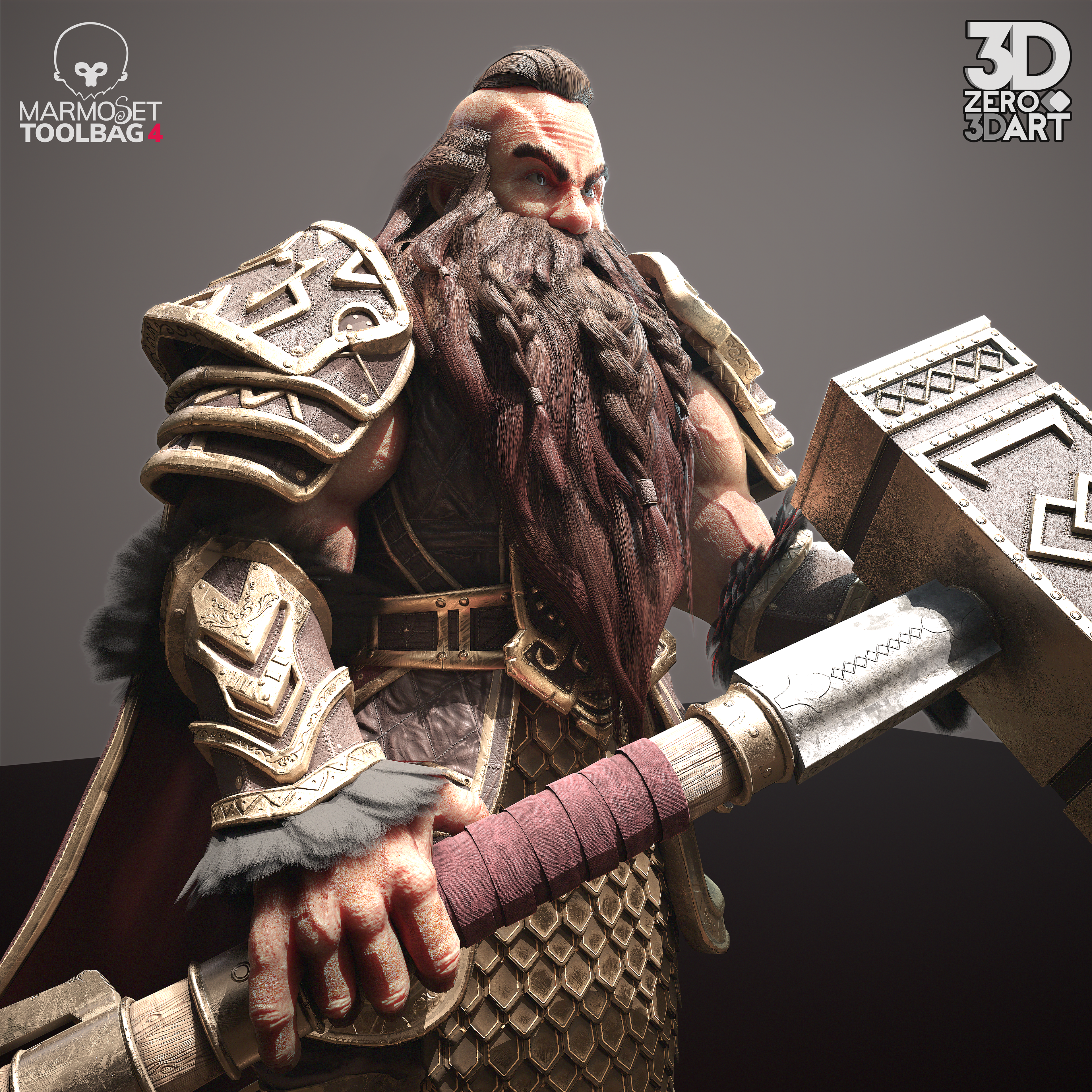 Dwarf Warrior, a game ready character made in the month of June 2022. Sculpted with zbrush, retopo and hair cards placement with Maya, texture with substance painter, hair and fur textures with fibershop and rendered in marmoset Toolbag 4.